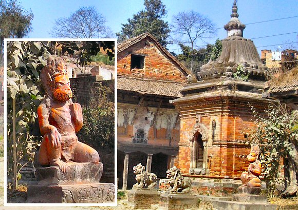 | Hanouman ou Hanuman est une des divinités hindoues les plus populaires ; c'était le ministre de Sougriva, roi des singes (satyres ou montagnards), et singe lui-même, comme toute sa nation; il contribua puissamment aux triomphes de Râma, et, en conséquence, il a sa part des hommages que l'on rend à ce dieu conquérant. Voici un abrégé de sa biographie et de ses exploits, d'après Langlois et les livres indiens. - Hanuman Ghat, à Bhaktapur (Népal). Il était fils d'Andjana, épouse du singe Kesari; mais la légende scandaleuse lui donne pour père Shiva lui-même. Pavana, dieu du vent, intermédiaire officieux entre Shiva, amoureux d'une toute autre personne, et Andjana, fut ensuite regardé comme le père de ce singulier personnage, qui, dès sa naissance, fort joueur et fort plaisant, prenant le soleil pour un fruit ou un jouet d'enfant, s'était élancé vers le char de ce dieu, et l'avait brisé. Indra, effrayé, l'avait foudroyé, et Pavana avait obtenu qu'il revînt à la vie. Cependant, en tombant, il s'était brisé les os de la joue, et c'est depuis cet accident qu'il fut nommé Hanouman (aux os des joues proéminents). Cet être est immortel, et on l'honore pour obtenir une longue vie. Il était doué d'une force et d'une légèreté extraordinaires : dans le Ramayana , on le représente franchissant d'un saut le détroit qui sépare du continent l'île de Sri Lanka , et transportant une montagne entière, sur laquelle se trouvait une plante jugée nécessaire pour sauver les jours de Lakshmana. Ses espiègleries lui avaient une fois attiré la malédiction des brahmanes, qui méditaient, les yeux fermés, au bord d'un lac; il y avait jeté un énorme rocher qui avait fait remonter l'eau et forcé les brahmanes à s'éloigner. Puis il avait repris le rocher, et quand les saints personnages, ayant achevé leurs prières, voulurent faire leurs ablutions, ils virent que le lac s'était retiré. Cette plaisanterie s'était renouvelée jusqu'au moment où, s'apercevant qu'ils étaient joués, les brahmanes l'avaient, par une imprécation, privé de sa force. C'est alors que le malin singe, pour les fléchir, devint leur humble serviteur, leur apportant des fruits et des racines qu'il allait chercher dans la forêt. Ils le bénirent, et lui prédirent qu'il verrait Râma, et posséderait alors le double de la force qu'il avait perdue. - Hanuman représenté sur une peinture murale de Pashupatinath (Népal). Dans la guerre de Rama contre Ravana, tyran de l'île de Sri Lanka, il se mit au service du premier avec toute sa nation, et lui montra le plus grand dévouement. Envoyé comme espion à Lanka, capitale de l'île, il franchit le détroit comme nous l'avons dit plus haut, pénètre dans le palais du tyran, découvre la retraite de Sitâ, la console, et lui donne des preuves du tendre intérêt que lui porte son époux, et de l'expédition gigantesque qu'il a entreprise pour la délivrer des mains de son ravisseur. Il eût même transporté la belle dans les bras de son époux, mais celle-ci refusa de se laisser emporter par lui, ne voulant pas, par un excès de chasteté, qu'un autre que son mari mît la main sur sa personne. Avant de retourner rendre compte de sa mission, il ne veut pas laisser passer l'occasion de jouer quelques méchants tours à Ravana, et porte dans sa capitale le désordre et la mort. Arrêté par Indradjit, fils de Ravana, il paraît devant le tyran, qui ordonne d'entourer sa queue de matières combustibles et inflammables et d'y mettre le feu; mais ce fut pour le malheur de Lanka; Hanouman, sautant de maison en maison, communique ce feu à toute la ville. Il retourne auprès de son maître, et, à l'aide de ceux de sa nation, il jette dans la mer d'immenses quartiers de rocher, qui forment un pont sur lequel Râma peut entrer dans l'île avec son armée, défaire le tyran et délivrer son épouse. Ce sont les débris de ce pont qui, suivant les Indiens, font encore aujourd'hui les- écueils parsemés dans le détroit et si redoutés des navigateurs. Plus tard, Hanouman sauva encore la vie à Rama et à son frère. - Représentations d'Hanouman à Pashupatinath et à Varanasi (à droite). Photos : © Serge Jodra, 2011. On ne le représente pas seulement comme un guerrier, on veut qu'il ait été poète, et qu'il ait célébré les exploits de Râma en vers gravés sur le roc. On prétend que Valmiki, auteur du Ramayana , vit ce poème, et voulut sacrifier son propre ouvrage; que le généreux singe jeta alors à la mer les pierres qui étaient les monuments de son esprit; que plus tard on en retrouva quelques fragments qui, arrangés et augmentés par Damodara Misra, devinrent un drame intitulé Hanouman Nalaka. Dans les temples consacrés à Vishnou (incarné sous le nom de Râma), il y a presque toujours une petite chapelle dédiée à Hanouman, où celui-ci reçoit les honneurs divins. Dans la ville de Calicut , sur la côte de Malabar, on voit une pagode magnifique, élevée en l'honneur de ce fameux singe, et dont le portique est soutenu par sept cents piliers de marbre. (A. Bertrand). - Hanouman au Musée national de New Delhi (Inde) et à Swayambhu (Népal). Photos : © Serge Jodra, 2011. | |