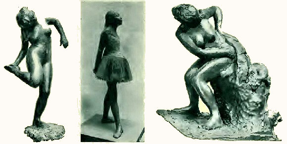 ![]() Comme peintre, Degas n'a fait que rarement des concessions à l'Impressionnisme. Les recherches chromatiques de ses contemporains ne semblent pas l'avoir beaucoup préoccupé. C'est avant tout un dessinateur. Nous avons dit ce qu'était à l'époque de ses débuts la facture de Degas, lisse, menue, méticuleuse, elle s'élargit peu à peu, acquiert une plus grande densité et se dore au contact des tableaux hollandais et anglais que l'artiste étudie assidûment. Plus mince, plus transparente que la facture de Manet, dont on l'a souvent rapprochée, plus modulée aussi et plus terne, elle n'a ni son éclat, ni sa fraîche saveur. Degas a de tout temps répudié les méthodes de travail impressionnistes. On ne connaît pas de lui de tableaux peints entièrement en plein-air. Il se contentait de la lumière uniforme d'atelier quand il n'empruntait pas aux feux d'une rampe de théâtre ces effets d'éclairage exceptionnels qui caractérisent nombre de ses scènes de ballet. A mesure qu'il vieillissait, Degas abandonnait sa manière de peindre initiale; il sabrait littéralement ses toiles de hachures et de zébrures, il exaltait la couleur, en juxtaposant les tons purs. Epris de recherches techniques, expert dans l'art de les combiner, il mélangeait l'huile au pastel, il peignait à la détrempe sur toile et à l'huile sur carton. Souvent il concentrait sur la figure toute son énergie, l'étudiait, la fignolait même et laissait subsister presque à l'état d'ébauche les détails de l'ameublement. Un tel déséquilibre entre les parties constitutives de l'oeuvre peinte qui doit former un organisme homogène n'est pas à l'honneur de Degas qui a subi, comme tant d'autres artistes de ce temps, les effets de la crise contemporaine. Le sculpteur. Pas plus en modelant la glaise en effet qu'en maniant les pinceaux ou les crayons colorés, Edgar Degas ne se soucia des artifices, des habitudes, des méthodes scolaires. Un seul objectif le guide, un seul but s'offre à son investigation : exprimer en leur caractère le plus intime la vérité et la vie. Degas dessinateur, pastelliste, coloriste, ou statuaire est toujours à l'affût du réel, et s'écarte de ce qui serait de nature à plaire, par le joli, le précieux ou le fignolé. Jamais la moindre intention littéraire ou sentimentale; ce qui incite sa main est le besoin d'exprimer, non la grâce convenue, mais la contraction d'un muscle, la saillie de l'os qui accuse nettement la carcasse, le squelette de l'animal, en l'espèce, femme ou cheval. Sculptures de Degas. Le même reproche objecté à sa peinture, cette statuaire de Degas l'a subi. On lui a tenu grief de « faire laid », de présenter non une série de formes aimables, mais des « résumés batraciens » de féminité. Ces filles, s'écrièrent en leur temps les critiques pudibonds que les mièvreries scabreuses ravissaient par ailleurs, sont d'une agressive obscénité. Un Degas ne s'est pas abaissé à répondre à ces basses puérilités. Il n'ignore point le pouvoir tyrannique du sensuel, et sait qu'il traduit le vrai en son essence la plus secrète. Cette centaine de statuettes que l'artiste prétendu misogyne avait modelées de son vivant, furent moulées après sa mort, et tirées à un petit nombre d'exemplaires. Ce sont, bien entendu, des ballerines, des courtisanes occupées aux soins de leur corps, des chevaux de courses. Degas visait-il, comme Daumier en ses terres cuites pétries en vue des lithographies, à servir son art graphique? Il n'est pas aisé de le déterminer. Il est probable qu'il ne se posa pas la question et se divertissait à modeler la glaise après avoir couvert sa toile. De son vivant, nul ou presque ne connut ces essais; on sait que Degas vivait, surtout après 1905, dans une solitude farouche, hostile à toute manifestation publique, aux cénacles, aux salons; le succès mondain, l'incompréhension de la critique le mercantilisme des spéculateurs excitant sa haine et son ironie corrosive. Voilà ce qui explique la surprise que produisit la révélation de ces sculptures; seuls les intimes de Degas, Rouart ou Bartholomé, les avaient vues. Une fois cependant, Degas consentit à envoyer une statuette au salon des « Indépendants » c'est la « Danseuse » habillée, corsetée de toile, et dont les cuisses s'entrevoient sous la jupe ballonnée. Cet objet, même aux « Indépendants », fit scandale. La foule s'en écarta avec terreur, ne sentant pas qu'il y avait là, enclose, une parcelle de génie. La subtilité aiguë de cette analyse ne fut pas perçue, et l'on ricana devant l'expression têtue et rusée du visage. Degas, s'abstint de toute récidive, et d'ailleurs ce fut son unique expérience de statuaire vêtue. « Croyez-vous, disait-il à un de ses amis, que le trompe-l'oeil de la peinture et du dessin eussent pu me satisfaire? Il me fallut autre chose. »On a retrouvé, après le décès de l'artiste. ces figurines en mauvais état; la cire desséchée s'était fendillée, les armatures de fer perçaient en maint endroit la matière plastique; aussi le nom du fondeur A.-A. Hébrard doit-il être ici cité, qui sut avec des soins diligemment pieux, mettre en valeur cette partie et non la moindre, de l'oeuvre d'un maître. De fait, son oeuvre sculptée témoigne aussi bien de l'héroïque persévérance dont ce grand peintre n'a cessé de faire preuve dans toutes les sphères de l'action artistique, que de sa volonté de toujours mieux connaître cette forme fuyante et insaisissable qu'il a pourtant captée et qu'il est parvenu à s'assujettir. L'influence de Degas est limitée; son oeuvre si vaste, son oeuvre qui ouvre de si riches possibilités n'a été ni comprise, ni utilisée. Et pourtant c'est à Degas que revient en tout premier lieu ce mérite d'avoir composé avec l'espace, et rompu le réseau rigide des lignes perspectives, auquel la peinture du XXe siècle est redevable de quelques-une de ses découvertes. Parmi les élèv