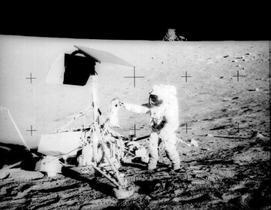 Apollo - 11 - La mission Apollo 11 a été lancée le 16 juillet 1969, avec à son bord, Neil Armstrong, Edwin (Buzz) Aldrin et Michael Collins. Les deux premiers, emportés par le Lem, vont marcher sur la Lune, le troisième restera en orbite à bord du module de commande. Ce premier alunissage se déroule le 20 juillet 1969. Il a lieu au nord de la mer de la Tranquillité. Un séjour de 21 heures, qui permettra de collecter une vingtaine de kilogrammes d'échantillons de sol. La capsule Apollo était de retour sur Terre le 24 juillet. Apollo 12 - Le lancement de la mission Apollo 12 a eu lieu le 14 novembre 1969. Les astronautes Charles Conrad et Alan Bean se sont posés le 19 novembre dans l'Océan des Tempêtes, à proximité de la sonde Surveyor 3, pendant que Richard Gordon restait en orbite lunaire. Le séjour sur la Lune a duré 31,5 heures, et 34 kg d'échantillons de sol ont été collectés. Le retour sur Terre a eu lieu le 24 novembre.