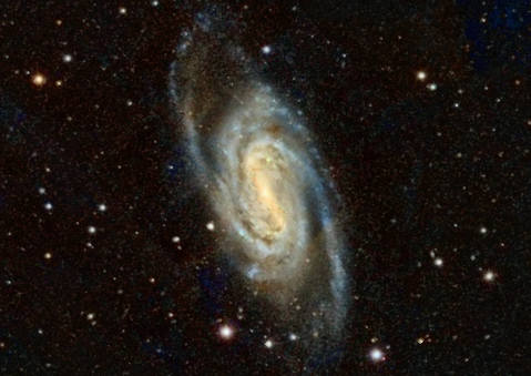 On notera aussi, dans l'alignement d'un bras, une autre galaxie spirale