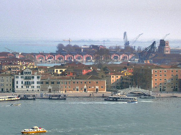 | La seule vue de l'Arsenal, ce magnifique édifice de Venise, suffit pour rappeler au souvenir la grandeur et puissance navale de la République de Venise, qui à l'époque de sa plus grande splendeur employait dans l'arsenal plus de 16.000 ouvriers. C'est d'ici que partaient, dans les siècles passés, les superbes galères se dirigeant aux glorieuses conquêtes dans les mers de l'Orient et c'est dans cet arsenal que, grâce aux travaux importants qu'y fit exécuter le gouvernement national, on a construit encore au début du XXe siècle, sans parler de ceux de moindre importance, les navires de guerre de première classe appelés : Morosini, Sicilia, Saint-Bon et ou encore le Francesco Ferruccio, lancé en 1911. L'Arsenal est aujourd'hui encore, en partie, une zone militaire à l'accès restreint. - La porte de l'Arsenal, à Venise. La fondation de l'Arsenal remonte à 1104 et est due au doge Ordelafo Falier, mais à l'origine il n'avait certainement pas l'étendue qu'il présente aujourd'hui. Pendant les siècles suivants, on l'agrandit et on le perfectionna d'une façon remarquable, c'est-à-dire en 1304, en 1325, en 1473, en 1539, et plus tard on y a construit les deux grands bassins de radoub dont l'un a 125 mètres, l'autre 90 mètres de long. Le grand bassin de radoub (Darsena grande) de l'Arsenal. L'Arsenal, qui se trouve à l'Est de la ville, couvre une superficie de 332.000 mètres carrés et embrasse un périmètre de presque 4 kilomètres. Il est entouré et protégé sur tous ses flancs par une muraille crénelée avec des tours aux angles et contient ou a contenu des bassins, d'anciens chantiers de construction, une ancienne corderie, une ancienne fonderie de canons, etc. La porte d'entrée, érigée en 1460 par un auteur inconnu, est réputé le premier exemple de l'architecture classique à Venise. Elle est surmontée de la statue de Sainte Justine de Jérôme Campagna (1460) et flanquée de 4 gros lions en marbre pentélique, qui proviennent de l'Attique et furent apportés à Venise d'Athènes par François Morosini en 1683. L'un d'eux, le plus grand à gauche, porte sur son dos une incision en caractères runiques, incision demeurée indéchiffrable, ce qui fait qu'on ne sait rien sur leur compte. L'entrée de l'Arsenal. Les ouvriers de l'Arsenal. Le canal de l'Arsenal, en direction de son débouché sur le canal de saint-Marc. © Photos : Serge Jodra, 2012. |