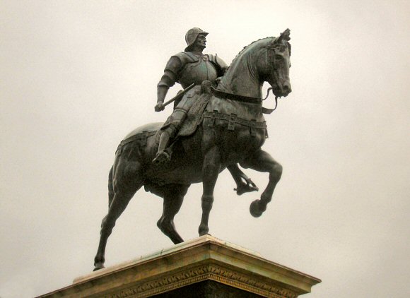 | L'église des saints Jean et Paul ou des SS. Giovanni e Paolo, dite San Zanipolo, à Venise, par son importance et sa richesse d'art, son histoire, et ses choses précieuses peut passer pour le panthéon des Vénitiens, car c'est ici qu'on célébrait les funérailles des doges, qu'on élevait des monuments en leur souvenir et à celui des plus grands hommes ayant rendu d'importants services par des exploits de guerre ou des affaires d'état. Cela dépasse les bornes modestes imposées à cet article que de vouloir décrire tout ce qu'il y a de beau et de précieux dans cette superbe église; nous nous contenterons donc des choses les plus intéressantes, le regard et l'intelligence du visiteur pourront suppléer au reste. L'origine de cette église remonte à 1242; on dit qu'elle a été fondée par les moines dominicains; mais on en ignore l'architecte. Elle mesure 97 m de longueur, 46 m de largeur et 37 mètres de hauteur. Sa construction avança très lentement, de manière qu'elle ne fut achevée qu'en 1430; mais la façade resta incomplète, telle qu'elle l'est encore. - On y admire la porte à colonnes et à arcs en marbre, les pignons au-dessus de la façade, pareillement en marbre, d'un travail artistique. Sur les côtés on voit deux bas-reliefs romains du XIIe siècle, l'un représentant l'Annonciation, l'autre Daniel dans la fosse aux Lions; en bas sont murées plusieurs sépultures, parmi lesquelles on remarque celle des Tiepolo (Jacob et Laurent) du XIIIe siècle. L'intérieur est en forme de croix latine, à trois nefs divisées par dix colonnes très hautes. Les fenêtres à vitraux coloriés sont d'une magnificence indescriptible, surtout celles de l'abside. Des monuments nombreux de doges ornent les murs de l'église et des chapelles avec des tableaux et des oeuvres très précieuses des meilleurs peintres et sculpteurs du temps, oeuvres que nous n'énumérons pas particulièrement à cause des bornes imposées à ce volume. L'intérieur de l'église San Zanipolo. Les deux Palma, le vieux et le jeune (dont les bustes sont au-dessus de la porte menant à la sacristie), sont aussi ensevelis dans ce temple, ainsi que les frères martyrs Bandiera et Dominique Moro, comme on le voit par les pierres tombales du pavé. La statue équestre de Colleoni La statue de Colleoni sur le campo San Zanipolo, par Verrochio. © Photos : Serge Jodra, 2012. |