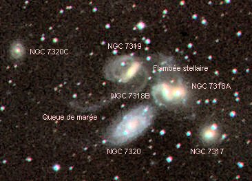 NGC 7319, NGC 7318A et, en bas, NGC 7320. Crédit: Jane C. Charlton (Penn State) et al., HST, ESA, NASA Ces objets minuscules et peu lumineux,